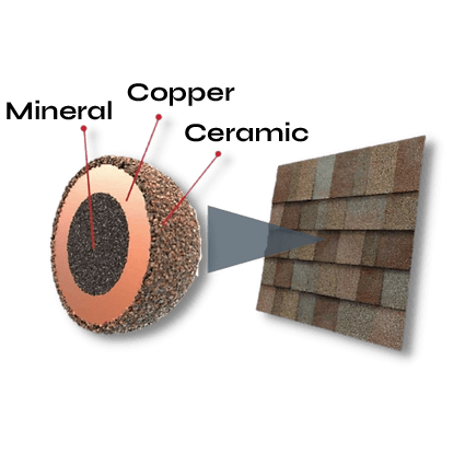 Don’t let algae growth ruin the exterior appearance of your home. As an industry leader in innovation, Owens Corning blends copper-lined granules, which help resist algae growth, into our colorful granules in a way that is proprietary to us and is scientifically developed to meet the needs of specific regional climates.